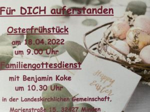 Osterfrühstück, anschließend Ostergottesdienst mit Gemeinschaftspastor B. Koke